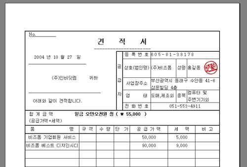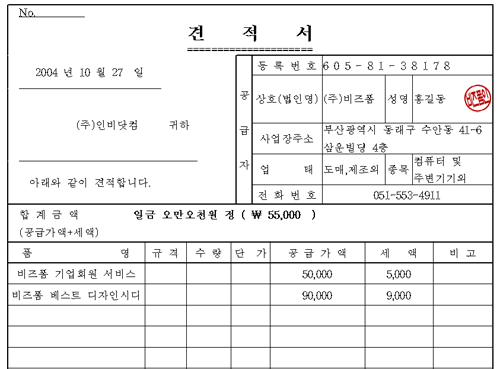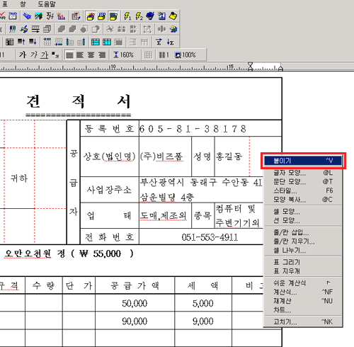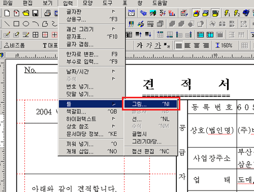 2. °ßÀû¼¸¦ ²Ä²ÄÈ÷ ±âÀçÇÑ ´ÙÀ½ ¸Þ´º¿¡¼ [ÀÔ·Â] -> [Ʋ] -> [±×¸²] À» Ŭ¸¯ÇÕ´Ï´Ù.