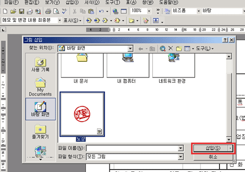 2. µµÀåÀÌ ÀÖ´Â Æú´õ¿¡¼ À̹ÌÁö¸¦ ¼±ÅÃÇÑ ´ÙÀ½ [»ðÀÔ]¸¦ Ŭ¸¯Çϼ¼¿ä.