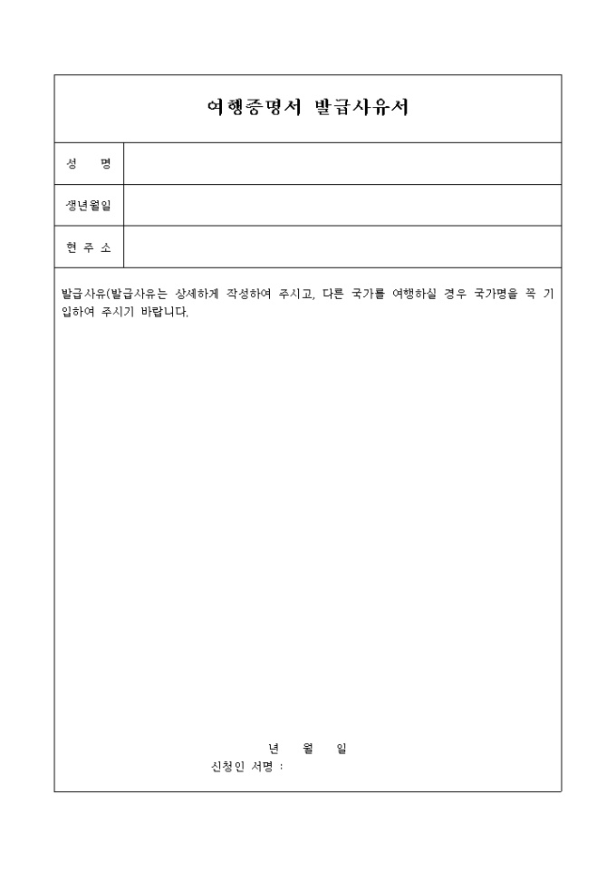 9,000원/월여행 증명서 발금 사유를 명시하는 양식입니다. 발급사유는 상세하게 작성하여 주시고, 다른 국가를 여행하실 경우 국가명을 꼭 기입하여 주시기 바랍니다.