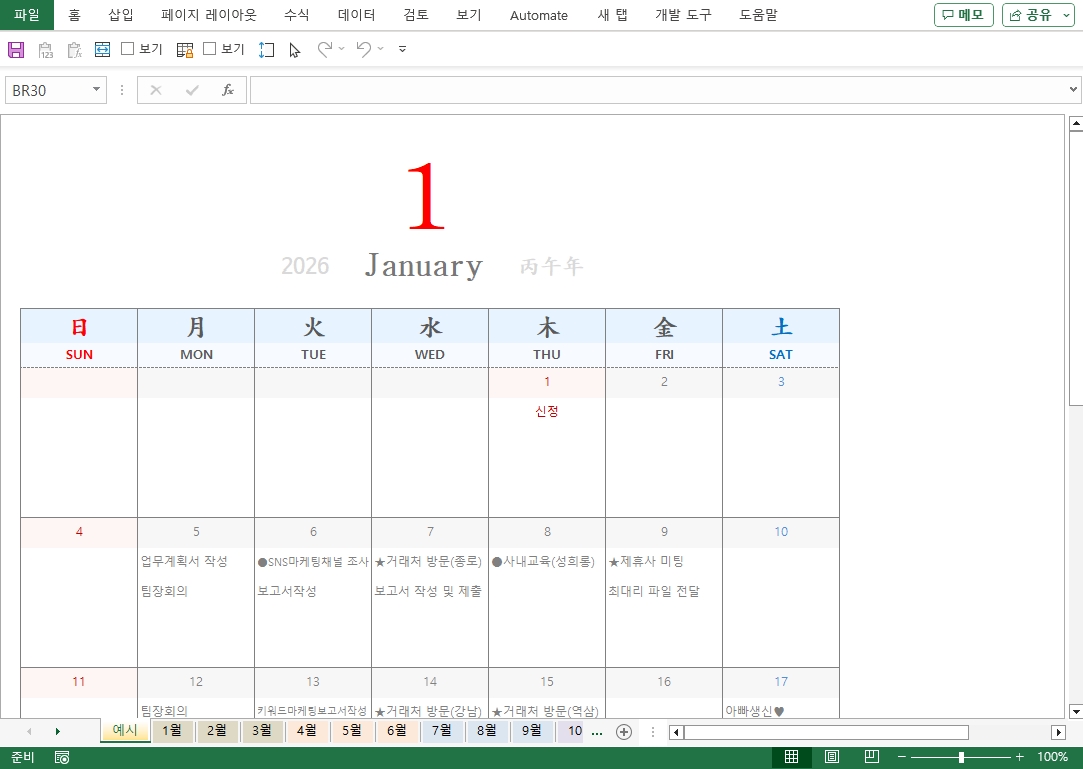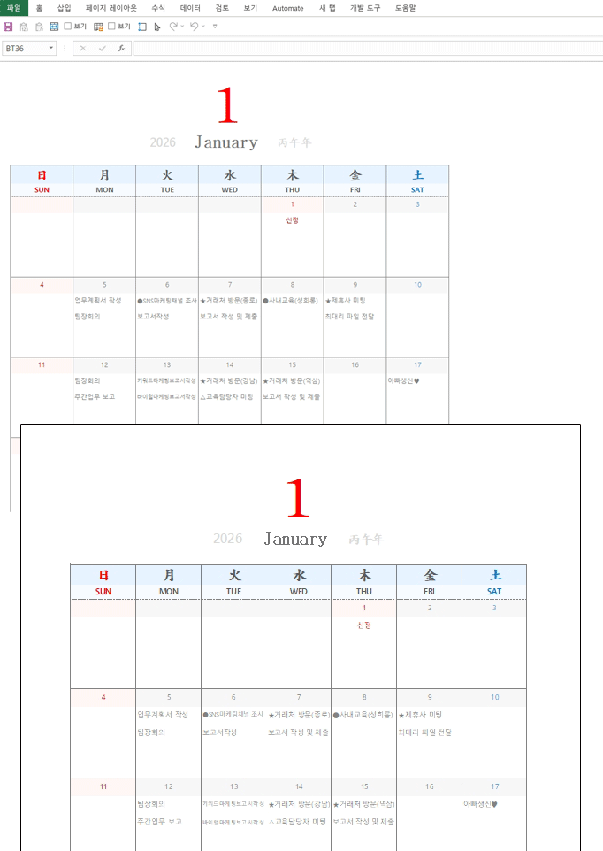 2026년 달력(월별일정,레트로달력) 서식입니다. 2026년 엑셀 달력 서식은 각 월의 일정을 체계적으로 정리하면서도, 과거의 향수를 불러일으키는 레트로 감성의 디자인을 특징으로 합니다. 단순한 스케줄 관리를 넘어, 옛스러운 색감과 폰트 등을 통해 사용자의 일상에 특별하고 아날로그적 정취를 더해줍니다.