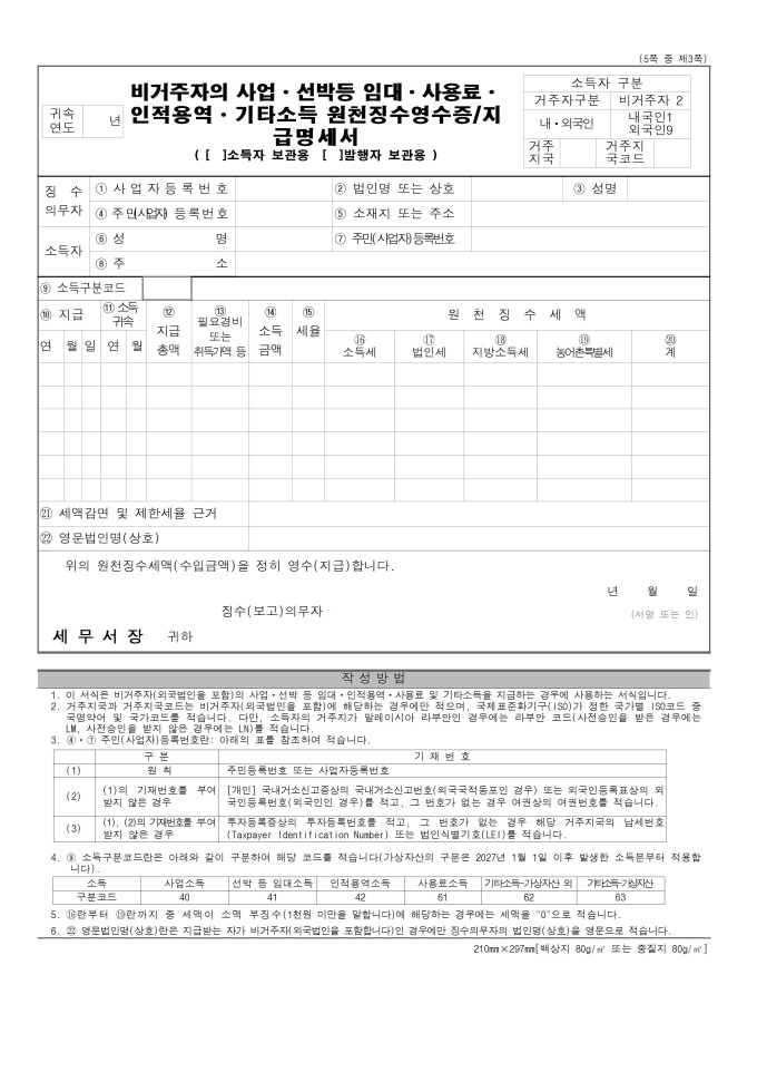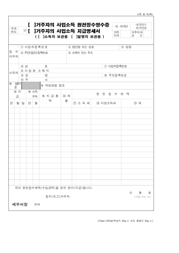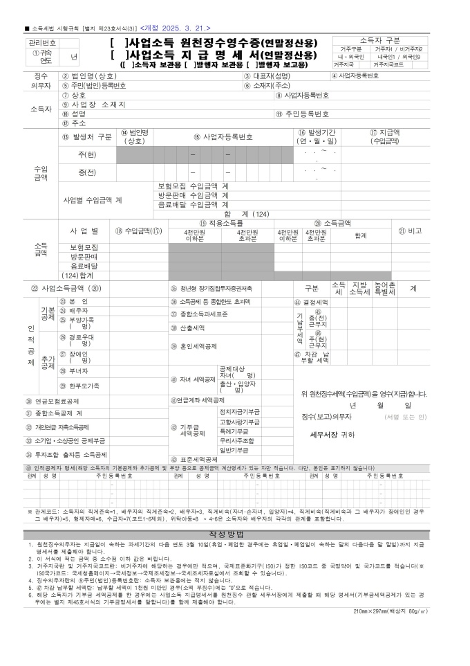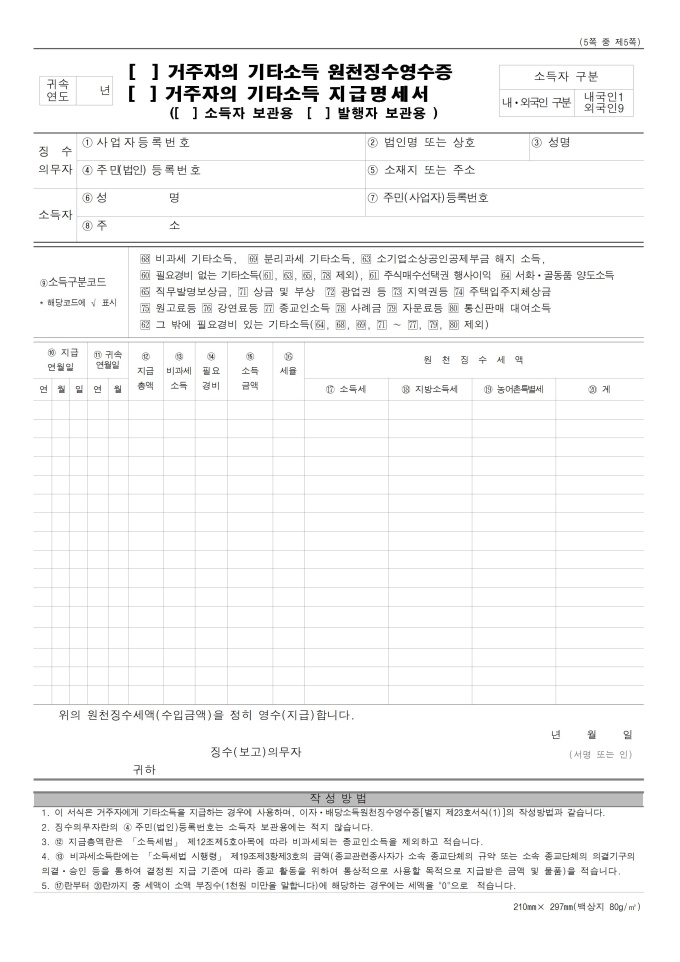이자ㆍ배당소득, 사업소득, 기타소득 원천징수영수증 및 지급명세서