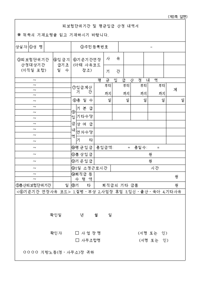 피보험단위기간 및 평균임금산정내역서(이직확인서)(2004.01.08 개정)