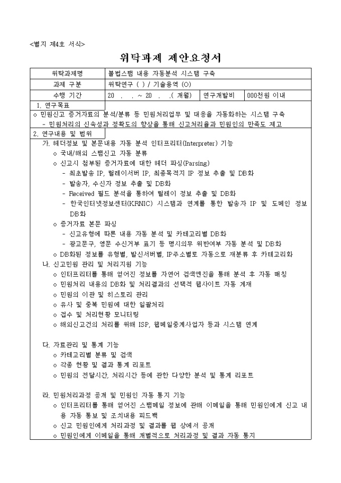 위탁과제 제안요청서(불법스펨내용 자동분석 시스템 구축)