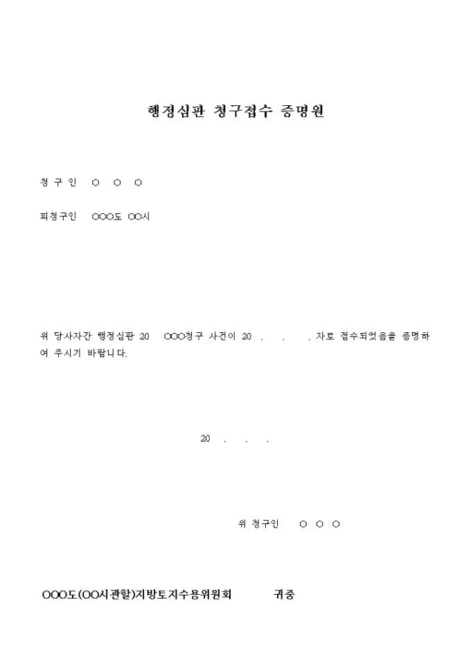 9,000원/월행정심판 청구 신청서가 접수되었음을 증명하는 증명원입니다.