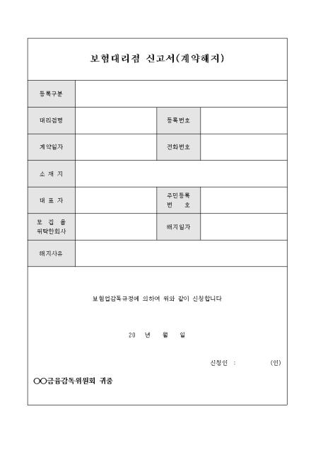 보험대리점 신고서(계약해지)