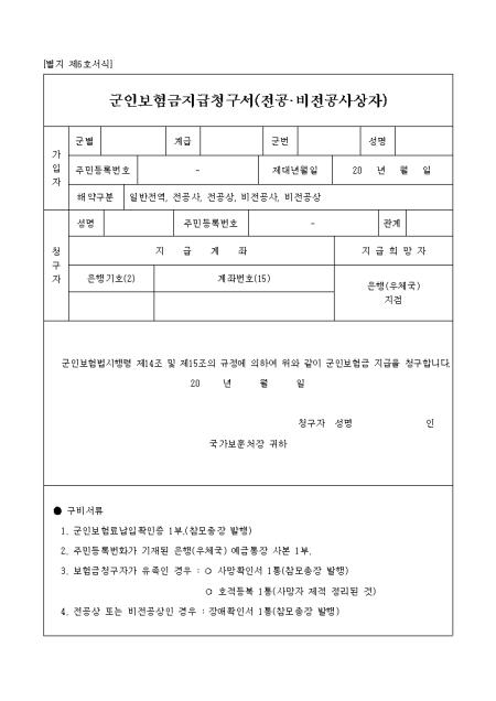 전투경찰순경, 교정시설경비교도(사망급여금, 상이급여금)청구서