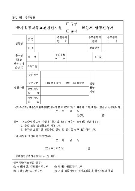 국가유공자등요건 관련사실공상 및 순직확인서발급신청서(공무원용)