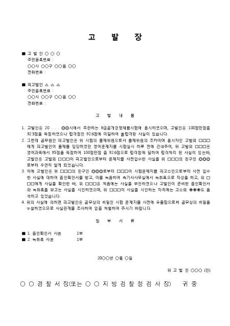 고발장(고소장, 탄원서, 진정서, 폭행)