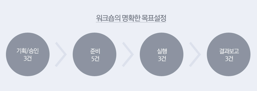 ¿öÅ©¼óÀº ÀÏÁ¤ÀÌ Âª½À´Ï´Ù. ±× ½Ã°£ µ¿¾È ¿øÇÏ´Â °á°ú¸¦ µµÃâÇÏ±æ ¿øÇÏÁÒ. ±×·¯¹Ç·Î »çÀü¿¡ Á¦¾È¼¸¦ ¹Þ¾Æ ¿öÅ©¼ó ÁÖ°ü ¹× ÁøÇàÀÚ°¡ Åä·Ð ½Ã°£À» Á¶À²Çϰí Á¤¸®ÇÒ ¼ö ÀÖ½À´Ï´Ù.