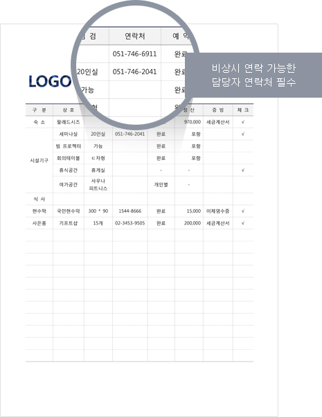¾÷¹« ¿öÅ©¼ó ÁøÇà ½Ã ÇÊ¿äÇÑ ½Ã¼³ Àåºñ³ª ¹°Ç° µîÀ» ÃÖÁ¾ È®ÀÎ ÇÒ ¼ö ÀÖ´Â ¸®½ºÆ®ÀÔ´Ï´Ù. ¿öÅ©¼ó ´çÀÏ ³¯ È®ÀÎÇÏ´Â °Í º¸´Ù ¸çÄ¥ Àü ´Ù½Ã ÇÑ ¹ø ¿¹¾à »óȲÀ» Á¡°ËÇÏ´Â °ÍÀÌ ÁÁ¾Æ¿ä.