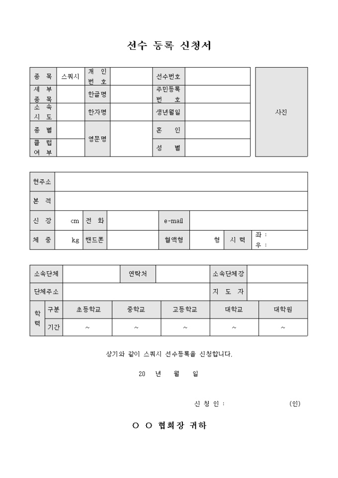 스쿼시 선수 등록 신청서
