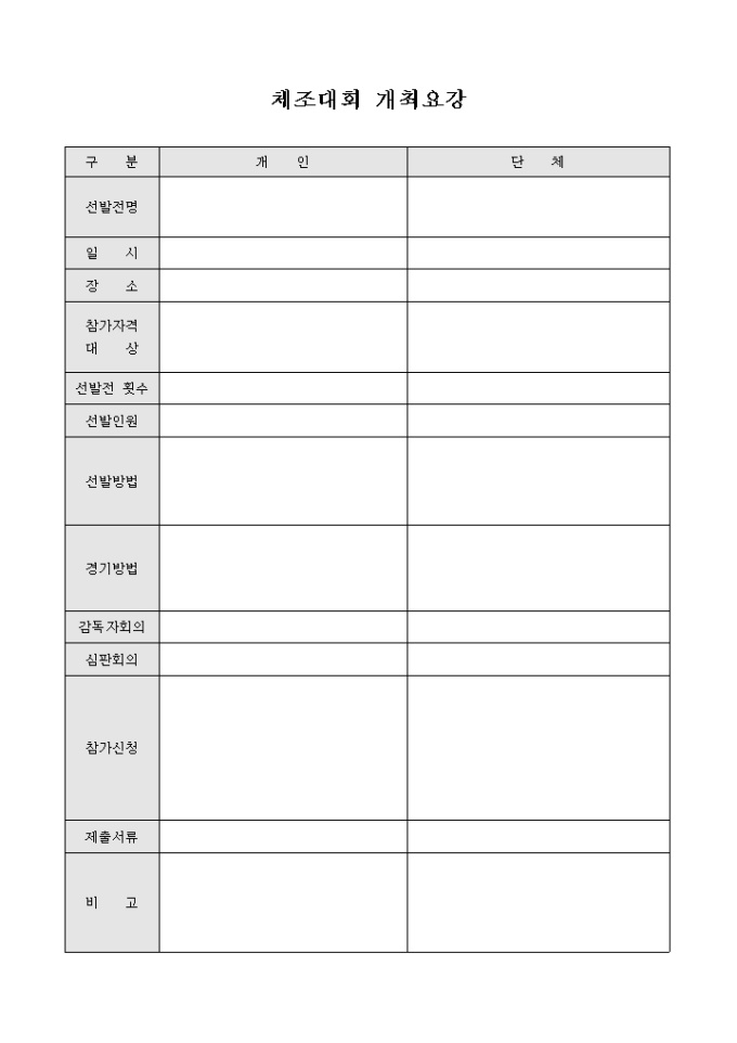 체조 대회 개최 요강(양식)