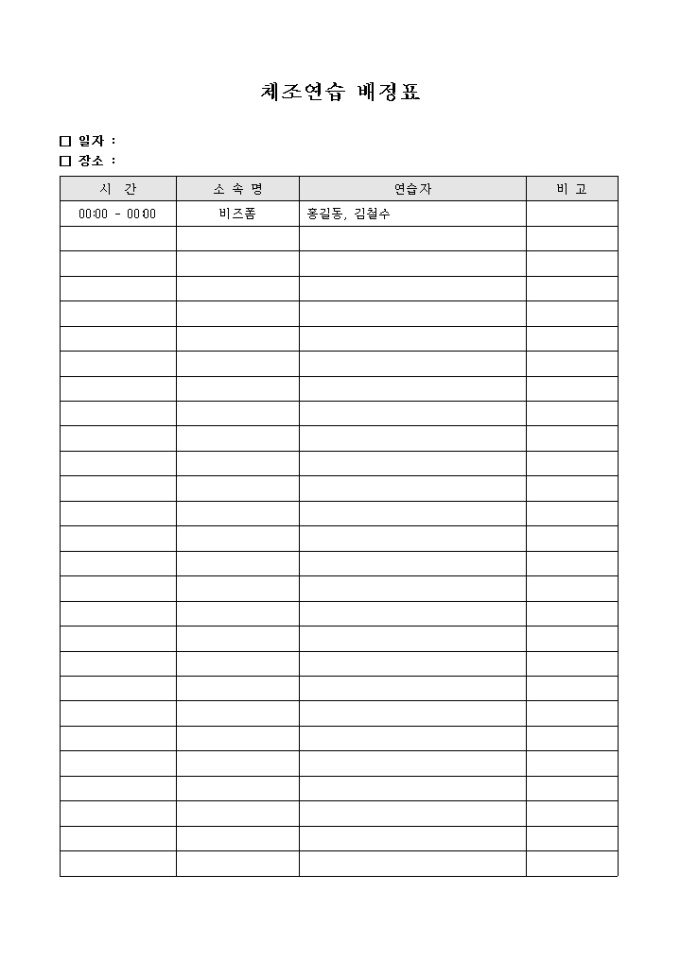 체조 연습 배정표